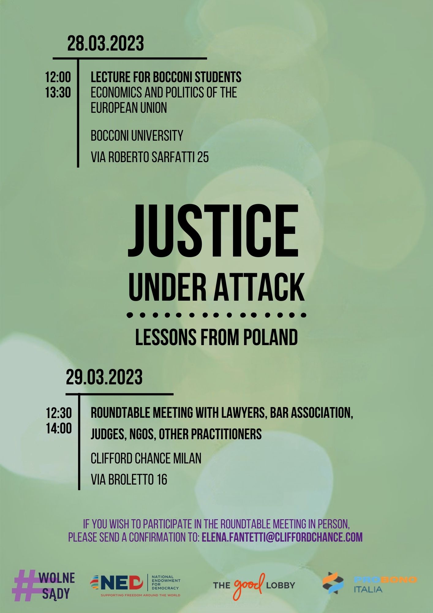 - On March 28th we will conduct workshops at Bocconi University as part of the event called „Justice under attack – Lessons from Poland”.